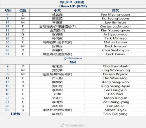 申花vs蔚山:双方均三外援,李可、高天意首发,刘诚宇出战