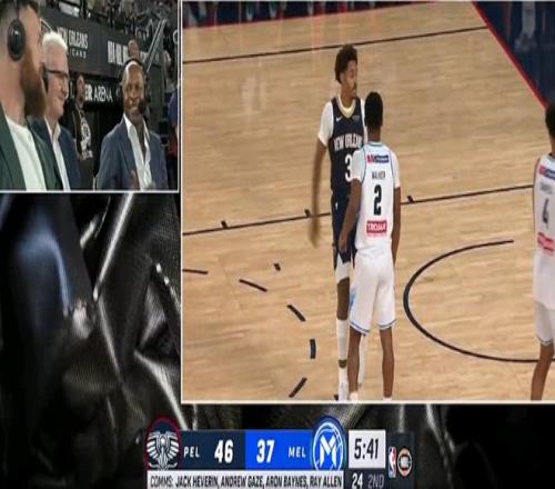 凯尔特人名宿加内特到场观战,雷-阿伦现场解说。