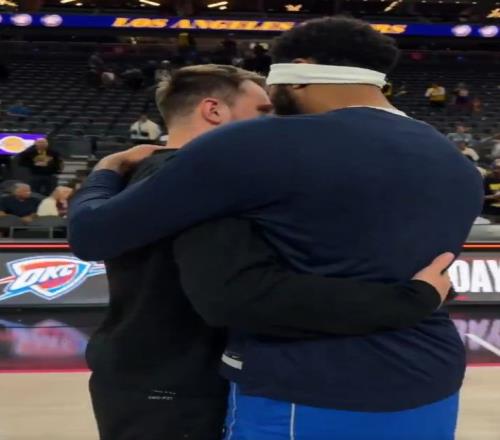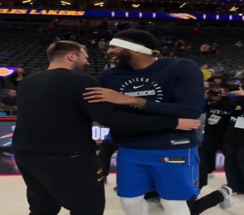 NBA官方社交媒体晒出视频,比赛结束后,东契奇和安东尼·戴维斯互相拥抱致意,两人有说有笑,场面欢乐。